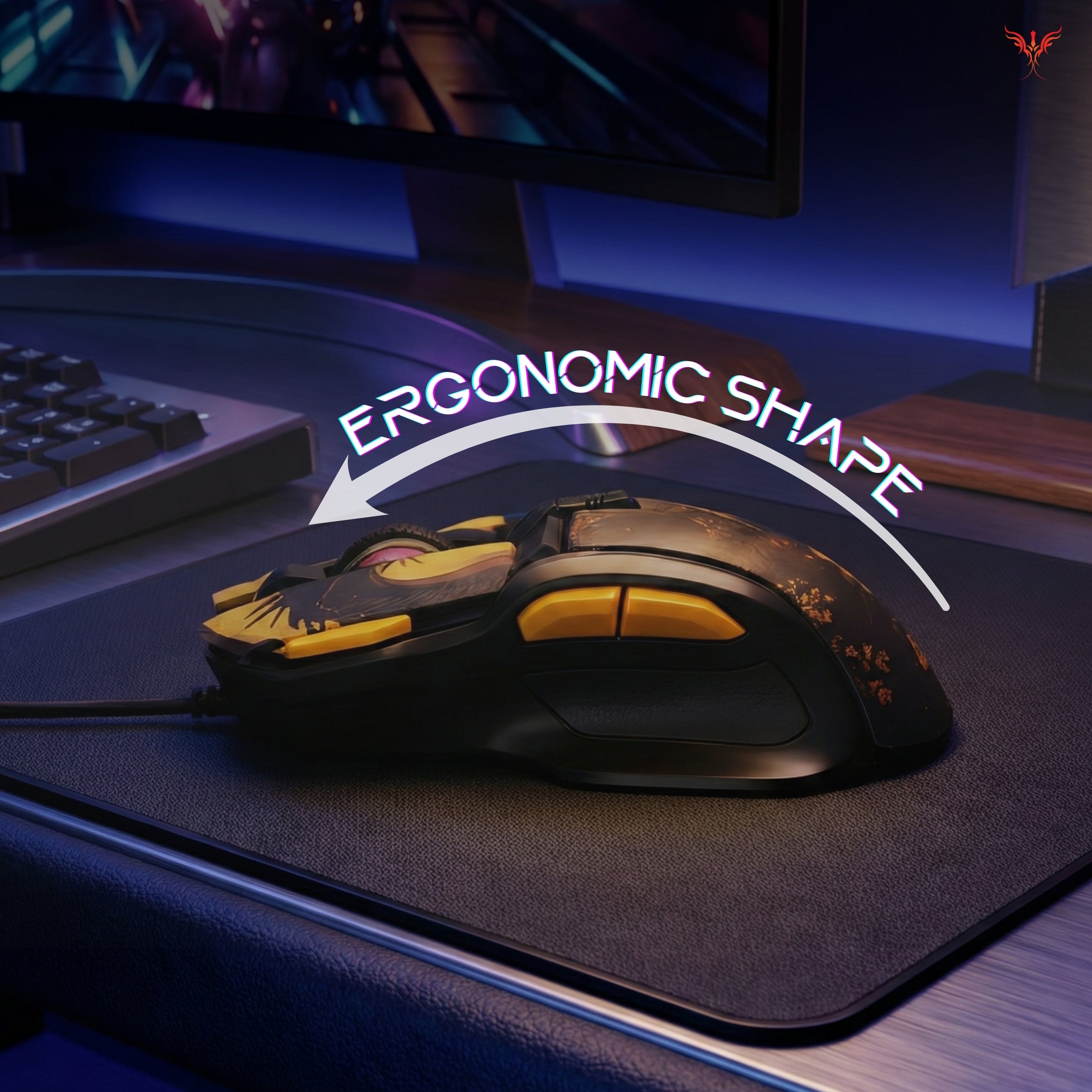 Professional-grade gaming mouse with sleek black finish and artistic dragon design. Built for gamers who demand precision, speed, and style.